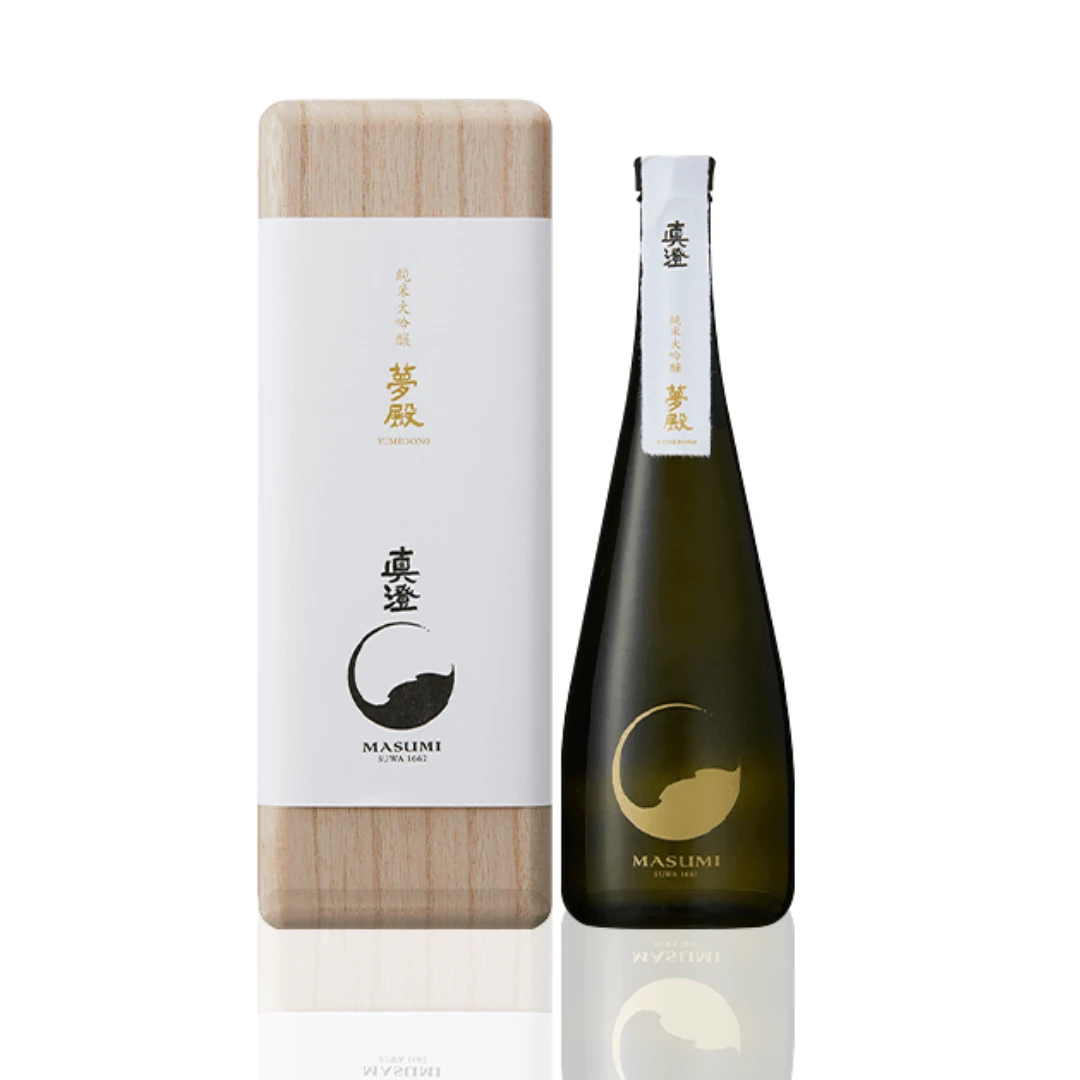 真澄 夢殿 純米大吟釀 雫酒 (附高級桐木盒)~真澄純米酒釀造的最高峰作品,數量較矜貴稀有的純米大吟釀。彌漫著白桃和香蕉的香氣,配合柑橘和花香;溫和甜度和舒暢酸度令人愉悅舒心,雅致華的香味!口味極具層次,餘味悠長,質地柔滑。