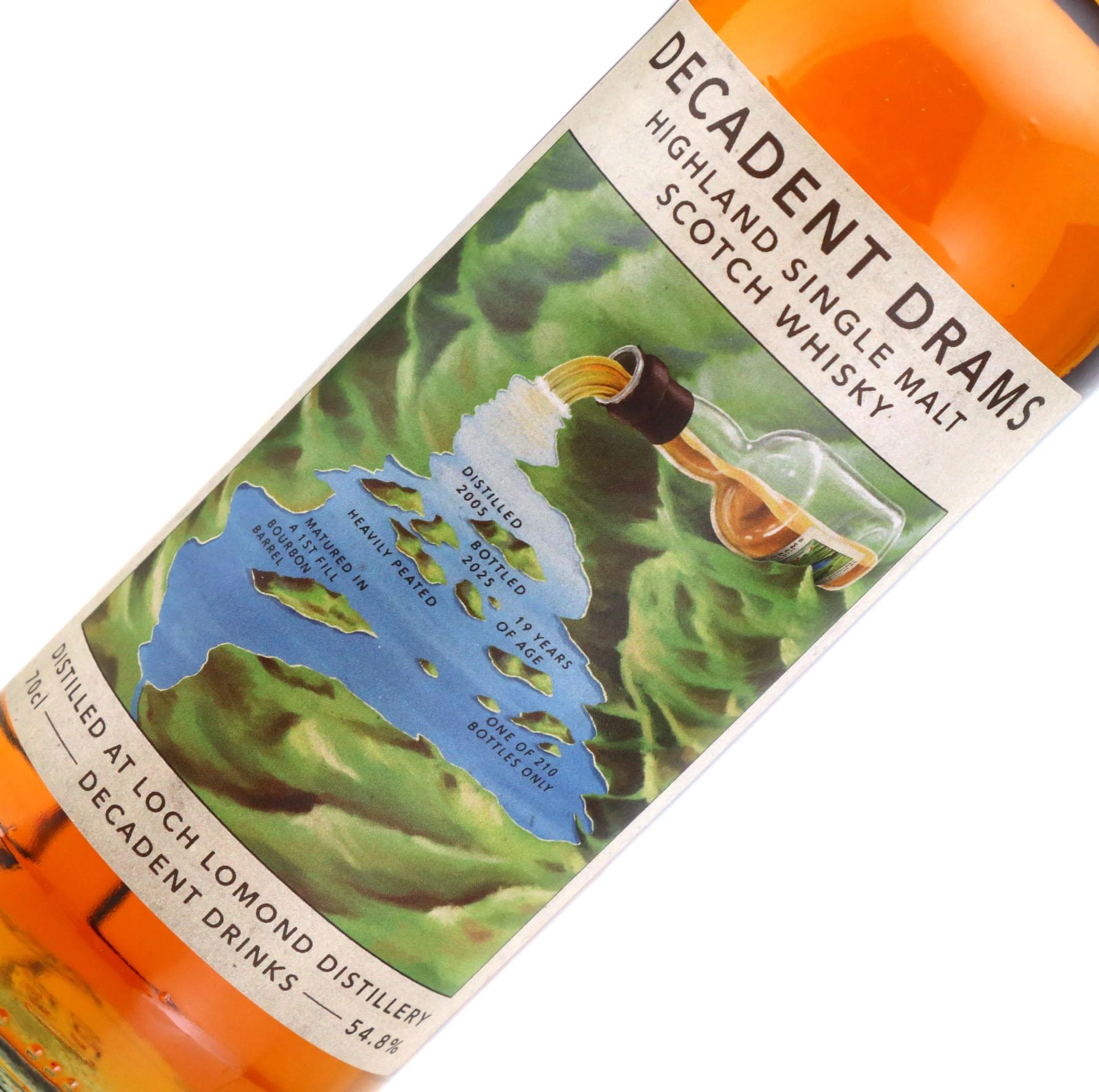 Decadent Drinks 是蘇格蘭獨立裝瓶行業的一個相對較新的公司。在產品總監Angus MacRaild 的領導下,稀有的單一麥芽威士忌、蘭姆酒、干邑白蘭地和雅文邑酒都以非常有限的數量裝瓶,並帶有酷炫的標籤。瓶裝上裝飾有Sponge 品牌,有威士忌海綿、蘭姆酒海綿、干邑海綿等。