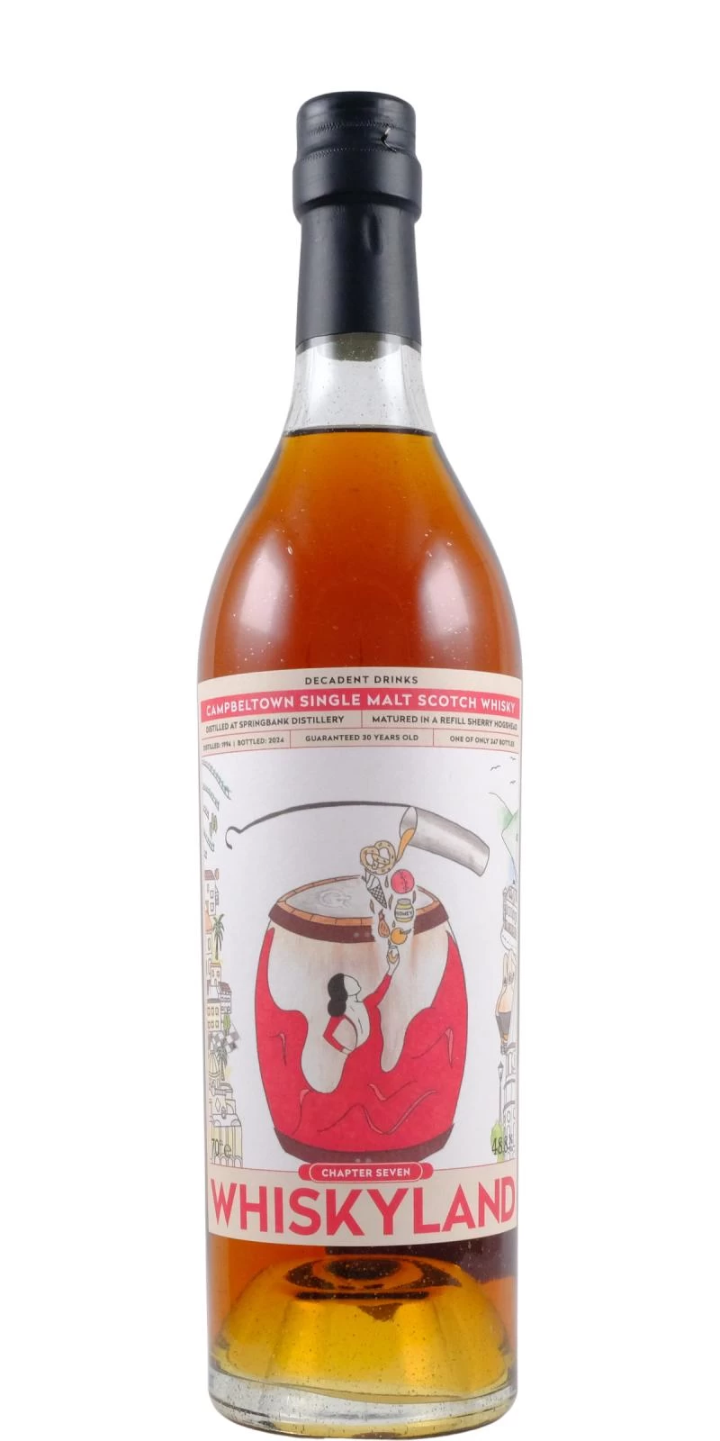 Whiskyland 第七章,來自1994年、經典30年熟成的雲頂。全程於refill雪莉桶中熟成,並以原桶強度裝瓶。這或許是我們至今裝瓶過最出色的Springbank之一,濃郁的雪莉影響與酒廠本身那獨一無二的風格深度交織,令人聯想起那些1960年代老雲頂的黃金年代。